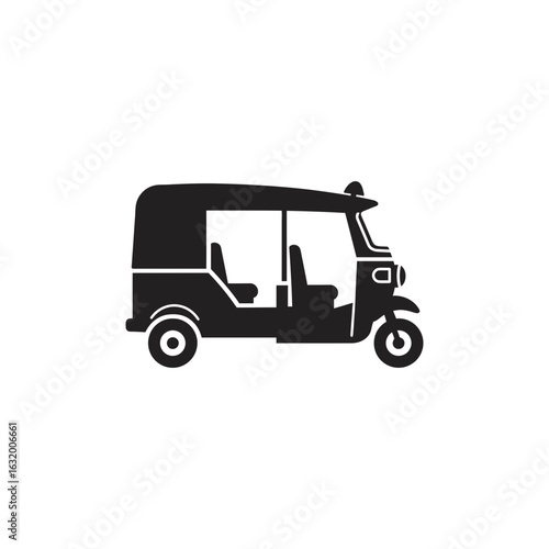 Fototapeta premium Gray auto rickshaw illustration on a black background.