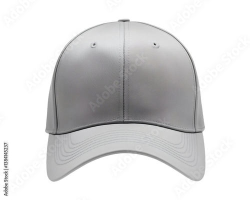 Fototapeta premium Gray baseball cap mockup with curved brim and smooth fabric material on transparent background