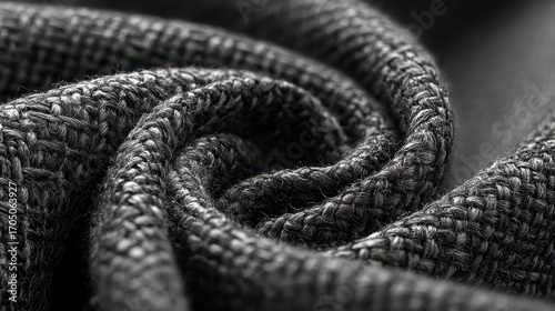 Obraz premium Gray braided rope resting on textured gray fabric creates a strong bond and...