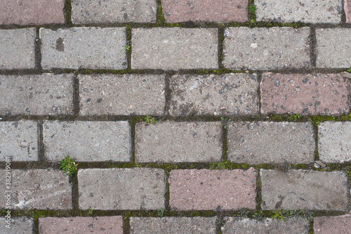 © evgeniya, Obraz premium Gray brick path, moss in the cracks