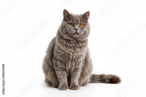 © AkuAku, Obraz premium Gray British Shorthair Cat Posing on a White Backdrop