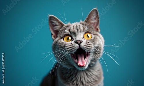 © junet, Obraz premium Gray British Shorthair cat surprised expression wide