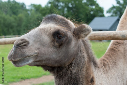 Obraz premium gray brown camel in an outdoor park in the middle of summer