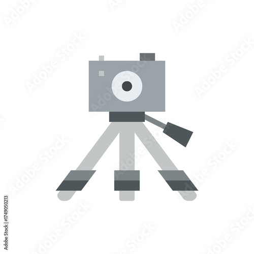 Fototapeta premium Gray Camera on Tripod Stand With Transparent Background Minimalist Flat Design Photography Icon