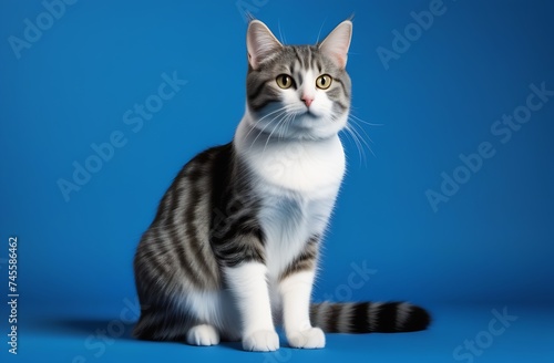 Obraz premium Gray cat on a blue background