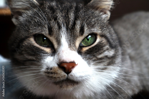 © Валерій Діденко, Obraz premium Gray cat sitting on the windowsill