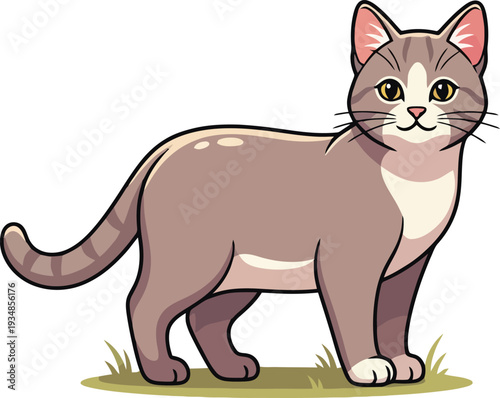 © Arif, Obraz premium Gray Cat Standing on Green Grass.