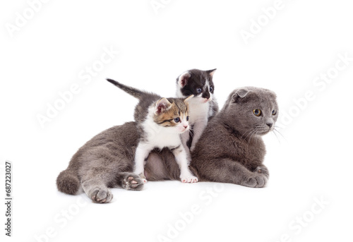 Obraz premium Gray cat with kittens.