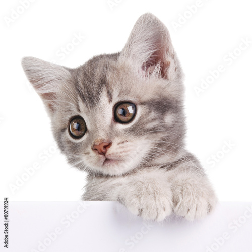 © serkucher, Obraz premium gray cat with white board