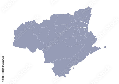 © watage, Fototapeta premium グレー色の日本地図, 徳島県の行政区分付き地図, Gray colored map of Japan, Tokushima prefecture