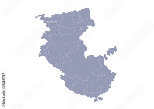 © watage, Fototapeta premium グレー色の日本地図, 和歌山県の行政区分付き地図, Gray colored map of Japan, Wakayama