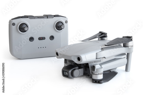 Fototapeta premium Gray colour drone with a remote control on a white background