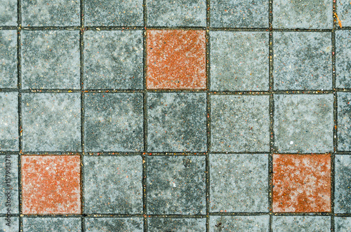 Fototapeta premium Gray concrete pavings on a sidewalk with red elements stones. Abstract...