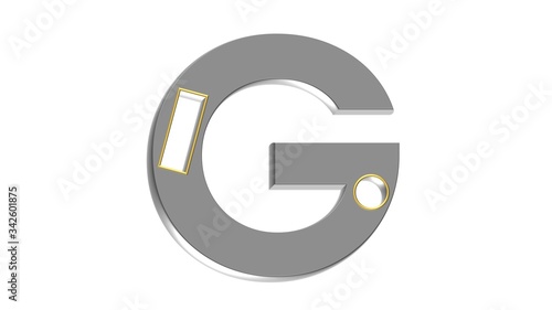 © MASOKI, Obraz premium GRAY 3D ENGLISH ALPHABET WITH GOLDEN FRAME ON HOLES : G
