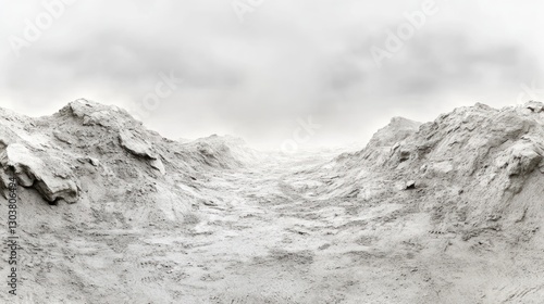 Obraz premium Gray, desolate mountain pass under cloudy sky; apocalyptic landscape, digital...