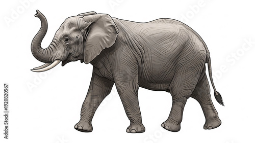 © Achmad Fauzan, Obraz premium Gray Elephant Statue Walking Isolated White.