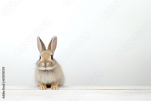 © Yulia, Obraz premium gray fluffy rabbit looking on camera. Isolated on white background. Easter bunny. empty space