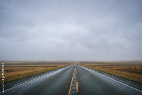 © Annie, Fototapeta premium Gray Foggy Drive in Montana