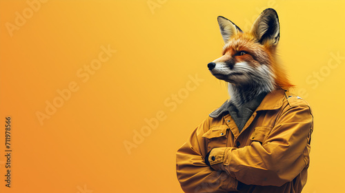 Fototapeta premium Gray Fox in Jacket on yellow background