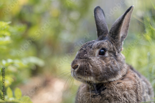 Fototapeta premium Gray garden rabbit soft light selective focus shallow DOF