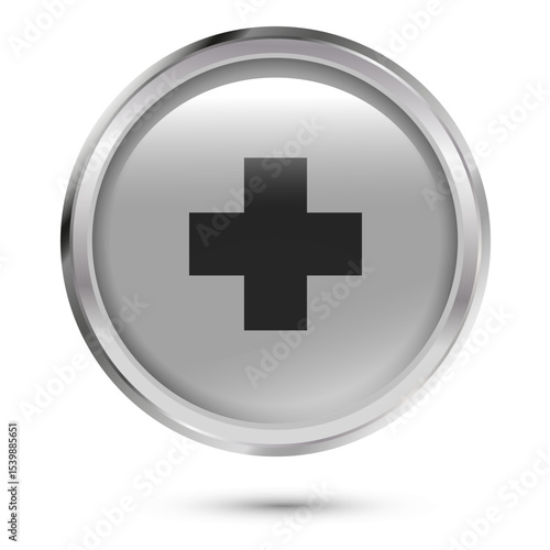 © Valentina, Obraz premium Gray glass button plus. Vector icon for app. EPS 10