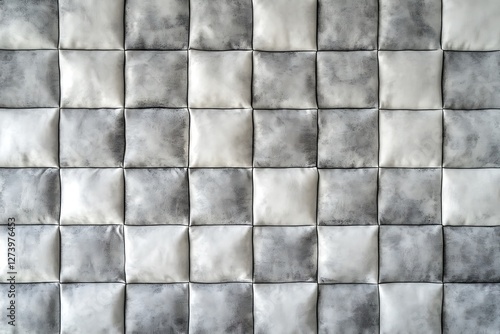 © Shelley, Naklejka premium Gray grey colored seamless natural cotton linen textile fabric texture pattern, with diamond quilted, rhombic stiching. stitched background banner panorama