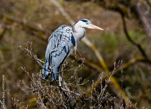 Fototapeta premium Gray heron (ardea cinerea) perching on branch