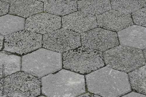Obraz premium Gray interlocking paving stone driveway directly from above.