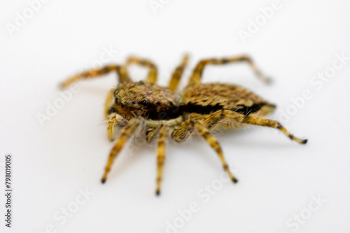 © Adilson, Fototapeta premium Gray jumping spider (Menemerus bivittatus), isolated in selective focus. flycatcher spider