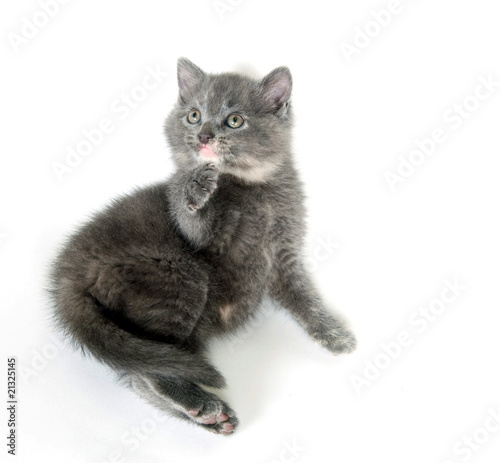 © Tony Campbell, Obraz premium Gray kitten laying on white