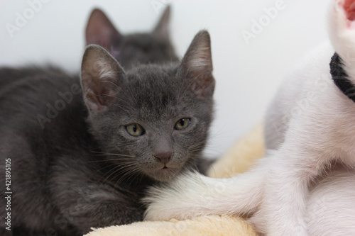 Fototapeta premium Gray kittens with white background