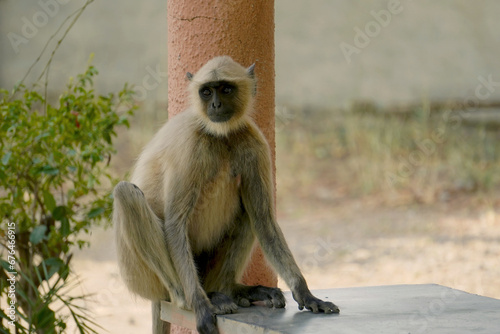 Fototapeta premium Gray langur sitting on the table
