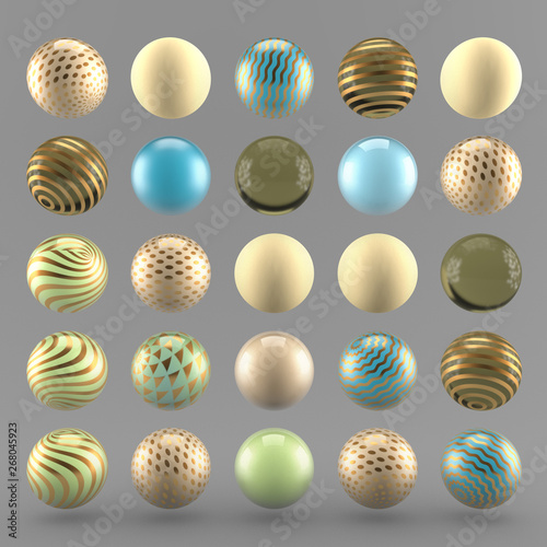 © Pierell, Fototapeta premium Gray luxury background with geometric shapes from balls. 3d illustration, 3d rendering.