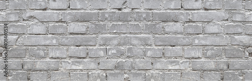 Fototapeta premium Gray monochrome brick wall texture background. Old Brickwork wide banner