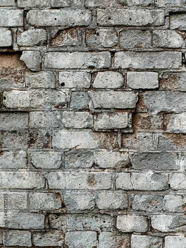 © TISHKOVA, Obraz premium Gray old textured brick wall with cracks for background