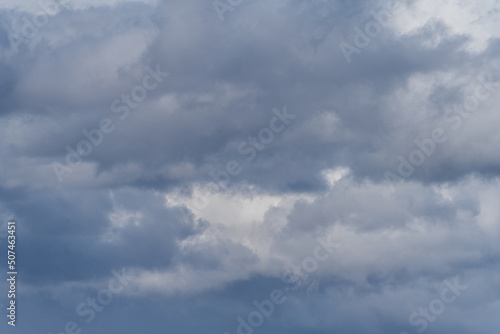 © flowertiare, Obraz premium Gray overcast cloudy sky over horizon. Closeup clouds