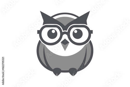 Fototapeta premium Gray Owl with Glasses on White Background for Education or Design