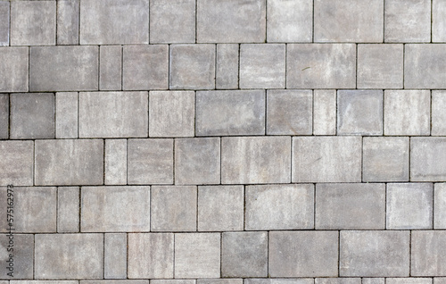 Obraz premium Gray paving stones texture. Paving surface road. Texture made of big gray cement bricks background
