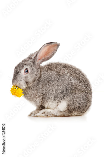Obraz premium Gray rabbit eating dandelion