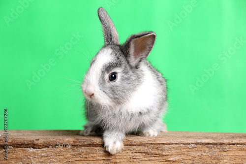© ruksil, Obraz premium Gray rabbit isolated on a green background.