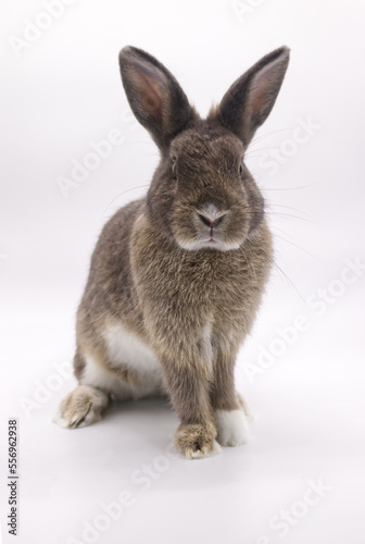 © Nisit, Obraz premium gray rabbit looking forward on white background