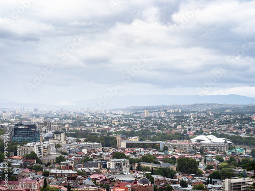 © Ekaterina, Fototapeta premium gray rainy clouds over Tbilisi city on summer rain
