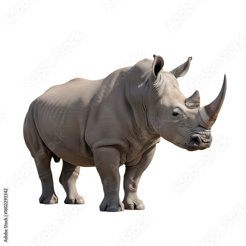 © Anim, Obraz premium gray rhinoceros with horn standing isolated on transparent background