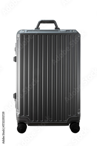 © heejin129, Fototapeta premium Gray rolling luggage standing on white backdrop
