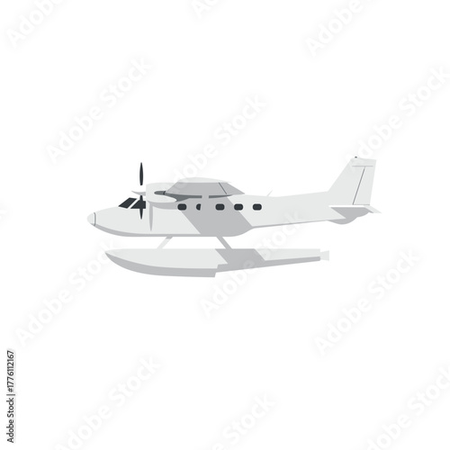 © Sakura, Obraz premium Gray Seaplane with Twin Floats and Propeller, Side View