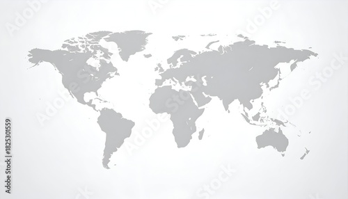 Naklejka premium Gray silhouette map of Earth on a white background, showing continents and...