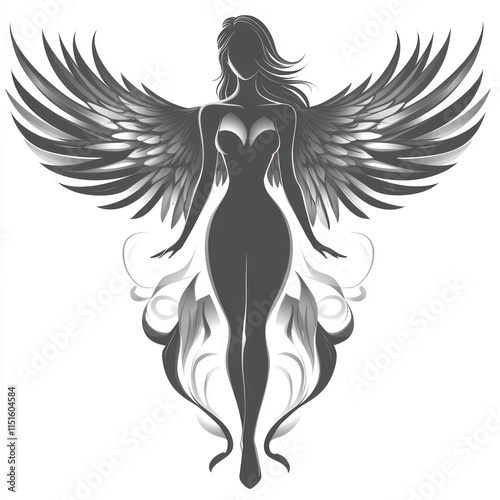 © lestari, Obraz premium Gray silhouette of winged woman.
