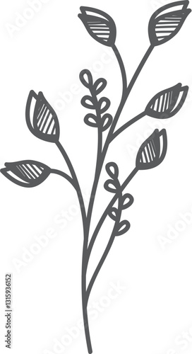 Obraz premium Gray sketched floral sprig, white background, design element