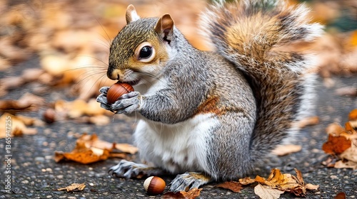 © harjiyo, Fototapeta premium Gray Squirrel Eating Acorn