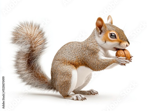 Obraz premium Gray Squirrel Eating Walnut on White Background